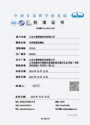 農殘校準證書