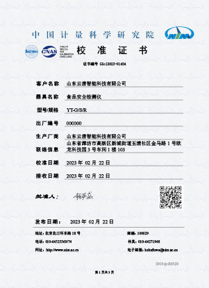 食品校準證書